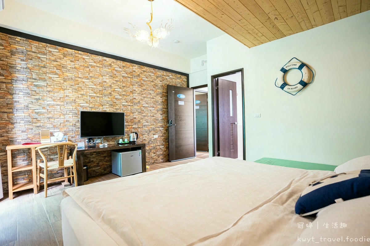 此次三天兩夜澎湖之旅,入住的是飛樂米星空號民宿的星空號愛爾蘭海雙人房,設有沙發區、聊天區、一般SIZE雙人床。