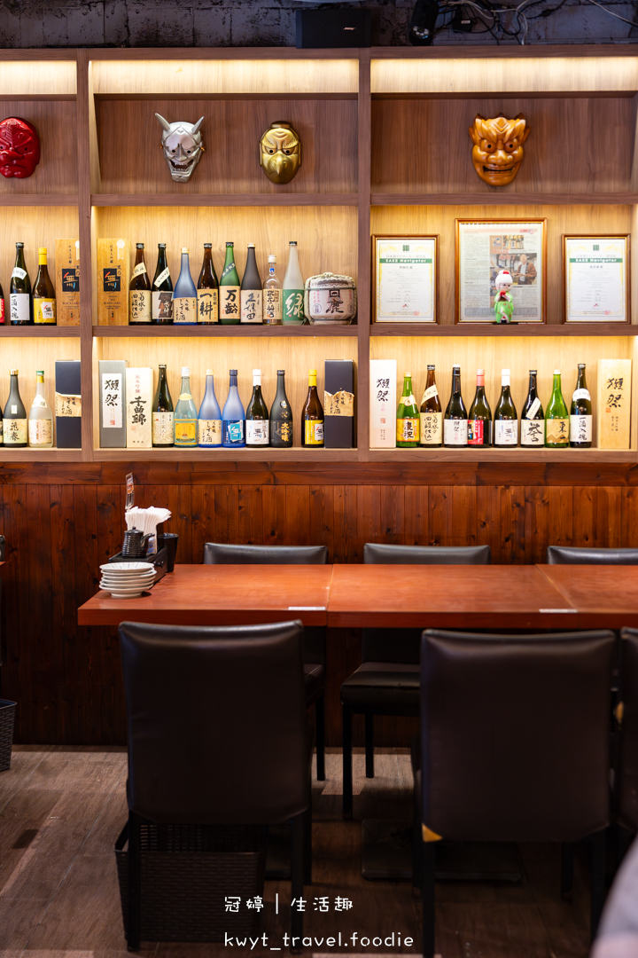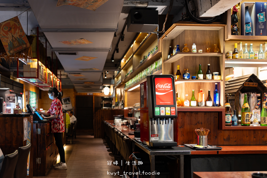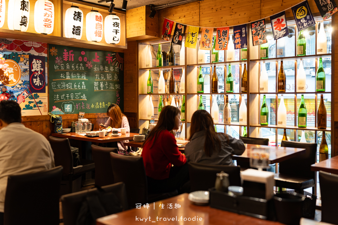紅燈籠、清酒瓶、日文海報等日本元素妝點空間,整體氣氛熱鬧、活潑,非常適合飲酒、用餐、聊天。