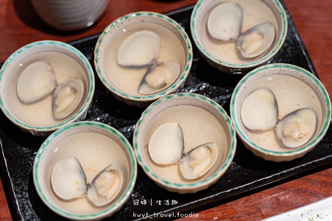 享用烤物、刺身前先點一盤清酒大蛤暖暖胃。