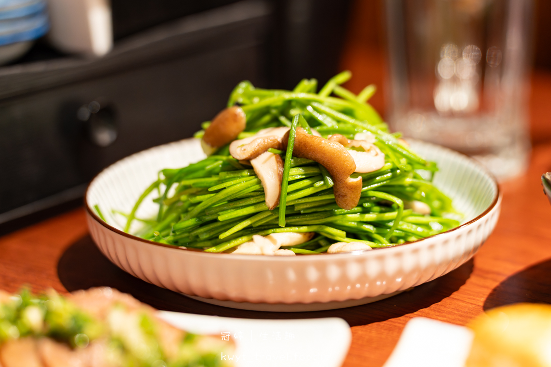 炒得恰到好處不會過老的鮮香菇炒水蓮,保持了水蓮清甜爽脆的口感。