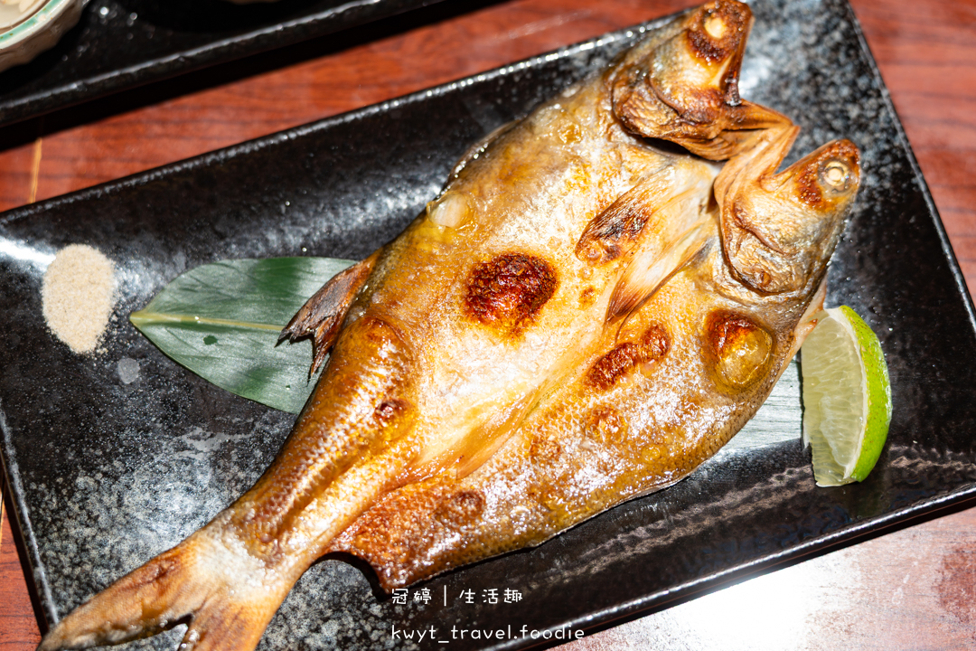 自製自曬午仔魚一夜干,加上師傅精湛的烤功,完整保留了魚肉鮮美,吃起來沒有腥味或土味。