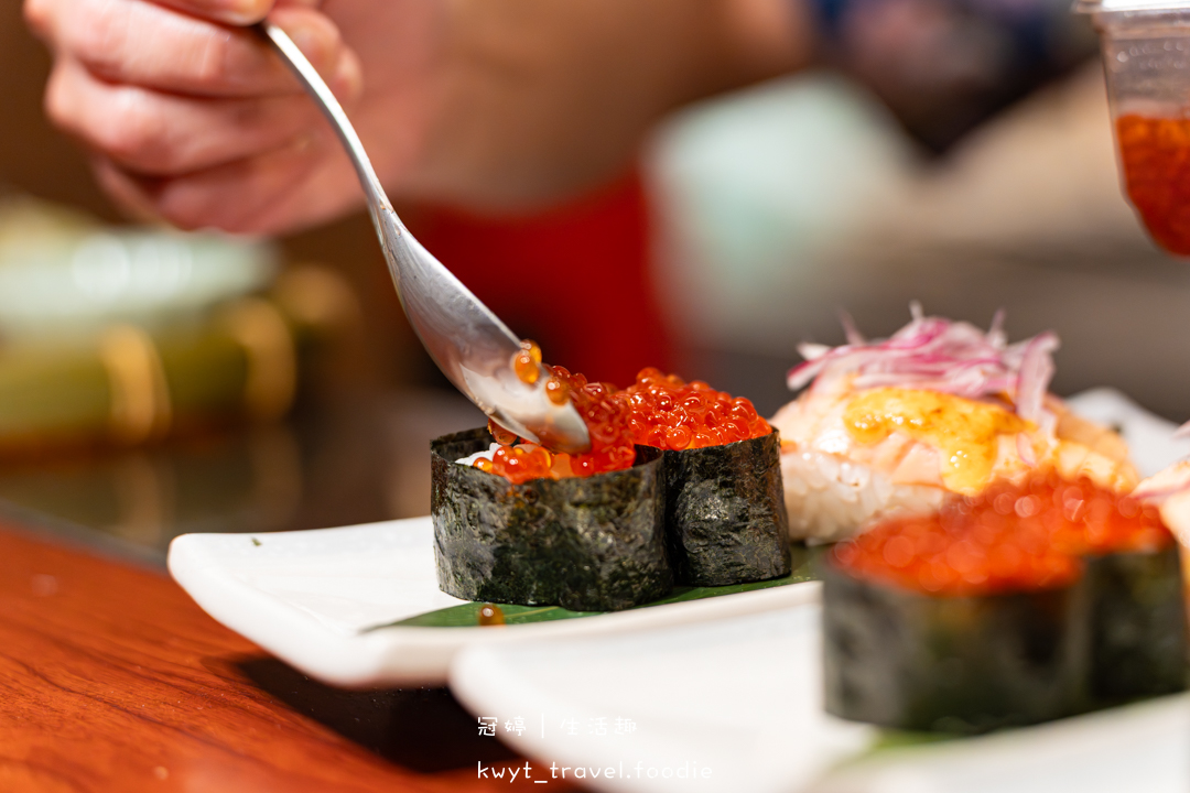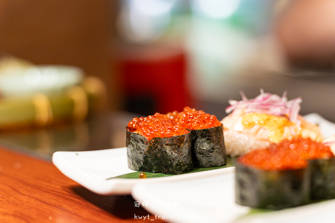 顆顆晶瑩剔透,入口後有爆漿感的鮭魚卵軍艦。