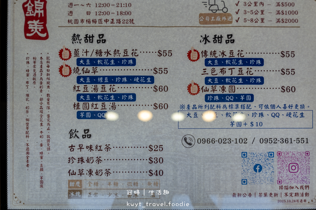 富岡火車站周邊小吃美食_錦美豆花菜單,攝於2025/11/08(六)