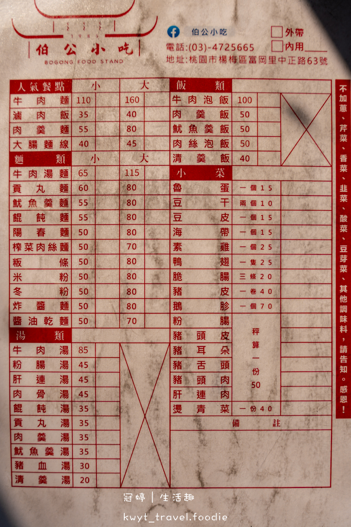 富岡火車站周邊小吃美食_伯公小吃菜單,攝於2025/11/08(六)