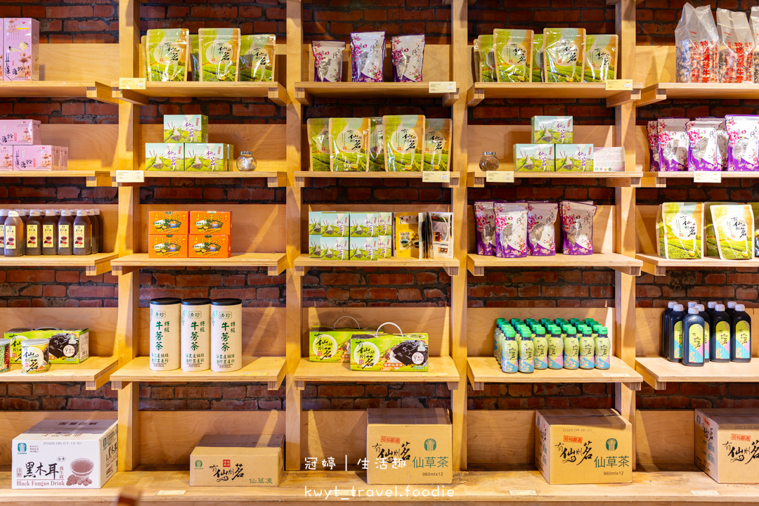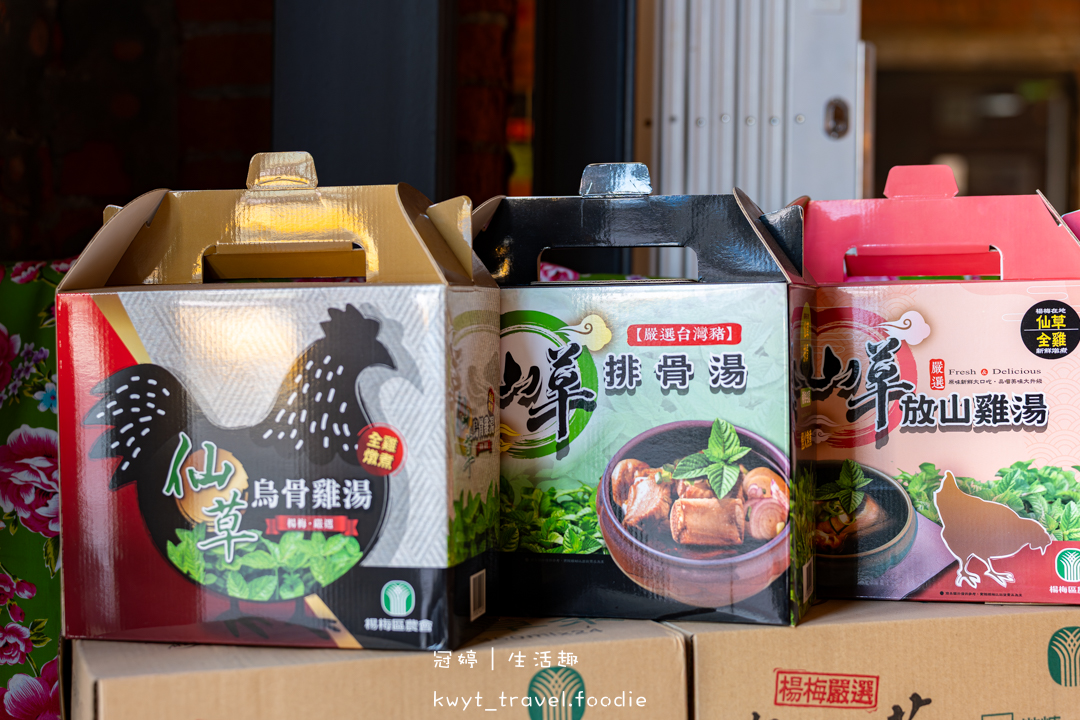 楊梅是著名的仙草產地,將在地特色融入伴手禮中,主要販售楊梅區農會輔導生產的仙草系列商品,如仙草茶、仙草乾、仙草烏骨雞湯、仙草放山雞湯等。