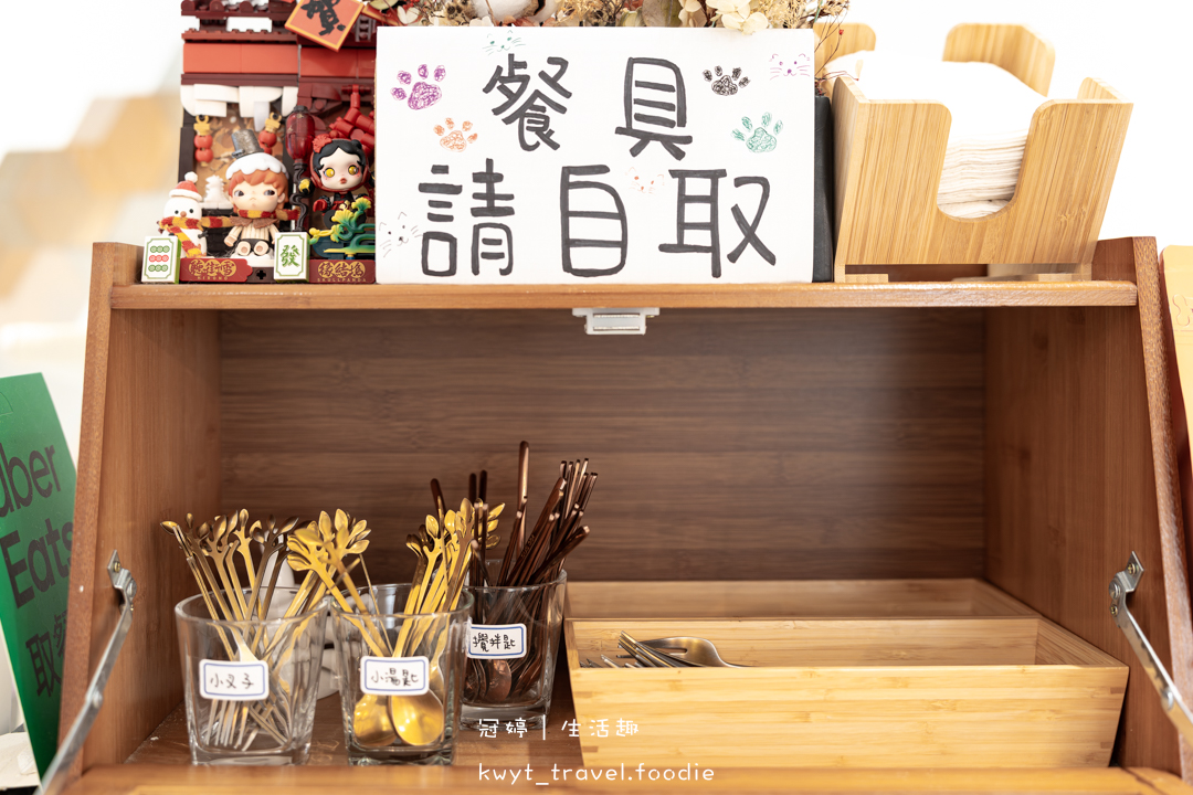 用餐時會使用到的餐叉、甜點勺、吸管都可以在此區自行取用。