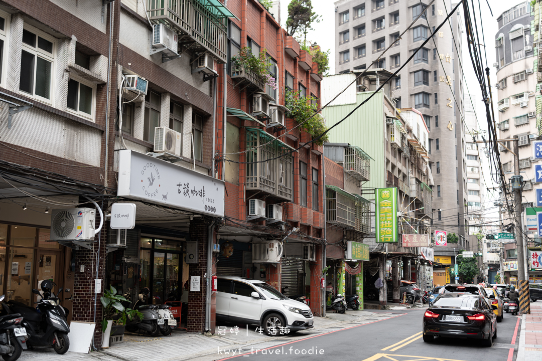 姊妹下午茶聚會當天,搭乘捷運到菜寮捷運站下車,從2號出口走出來後,跟著Google地圖指引走路大約6分鐘轉進同安街,即可看到招牌相當顯眼的古舕咖啡三重同安店。