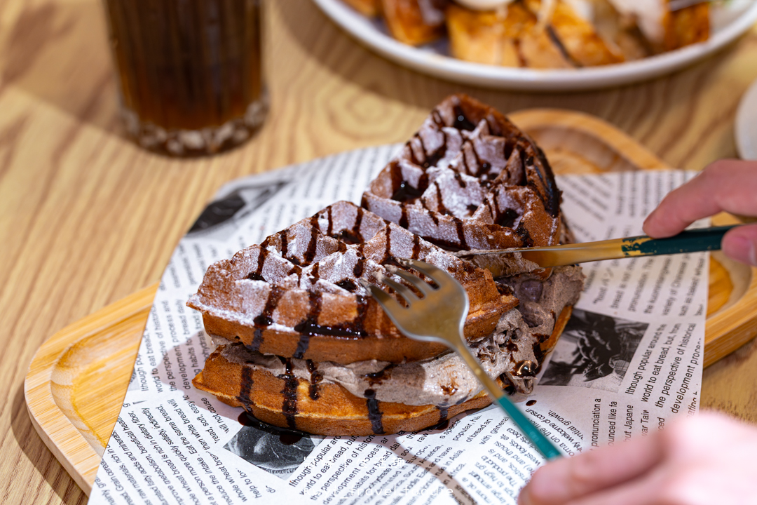現點現做、用料實在的Oreo巧克力奶霜華夫餅,份量超級大,建議兩人分食剛剛好。