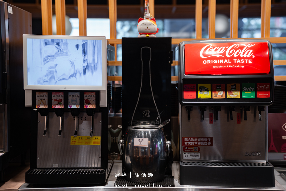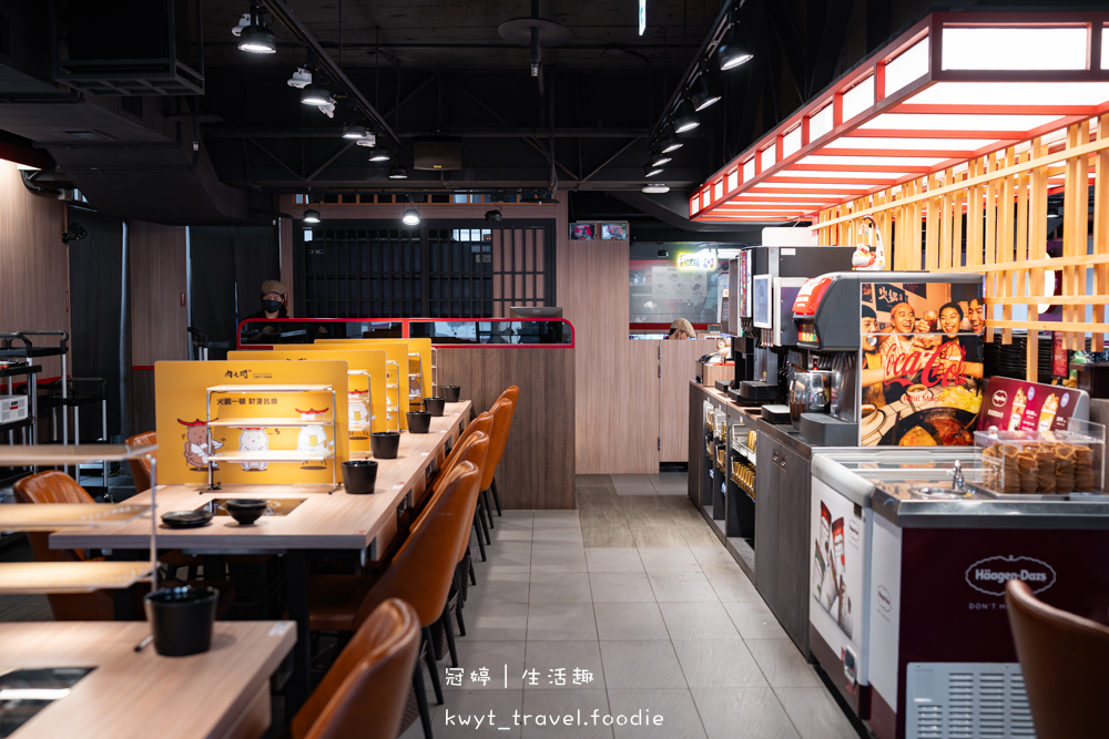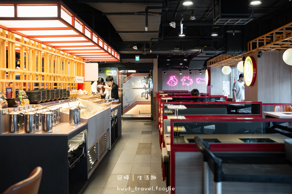 寬敞、即使滿座也不擁擠的用餐空間,拿取熟食、火鍋食材、飲料、醬料、冰品等餐食的自助吧動線流暢不卡卡。