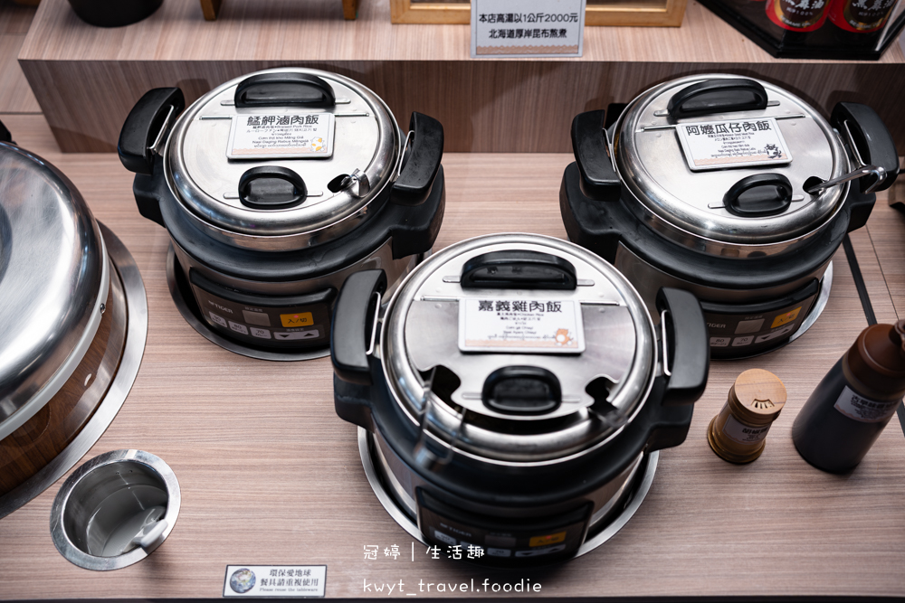 在台式火鍋店的超人氣麻油炸蛋、阿公豬油拌飯、艋舺滷肉飯、嘉義雞肉飯、阿嬤瓜仔肉飯,通通無限供應吃到飽。
