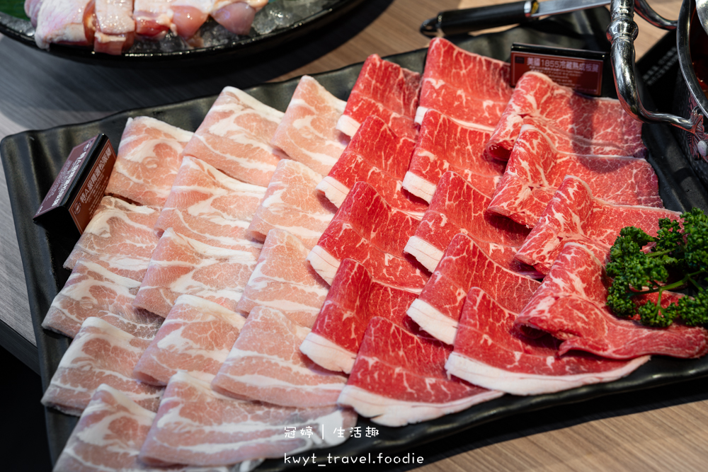 擁有完美油花比例的美國1855冷藏熟成板腱,推薦涮煮5~7分熟享用,口感最佳。