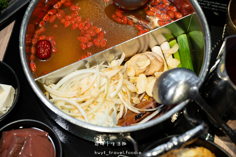 主餐選擇鮮嫩雞腿蛤蜊,湯底選擇可以完美襯托優質雞腿的藥膳養生雞湯。