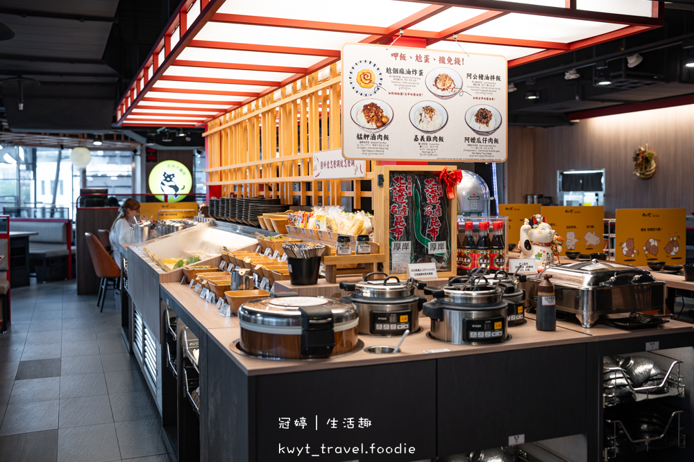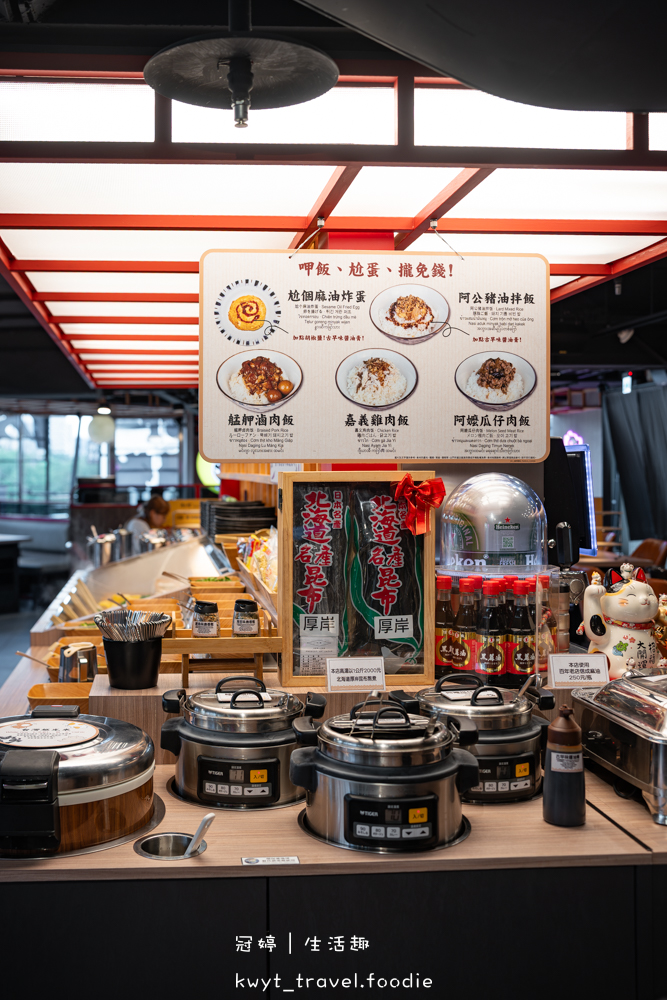 拿取熟食、火鍋食材、飲料、醬料、冰品等餐食的自助吧動線流暢不卡卡。
