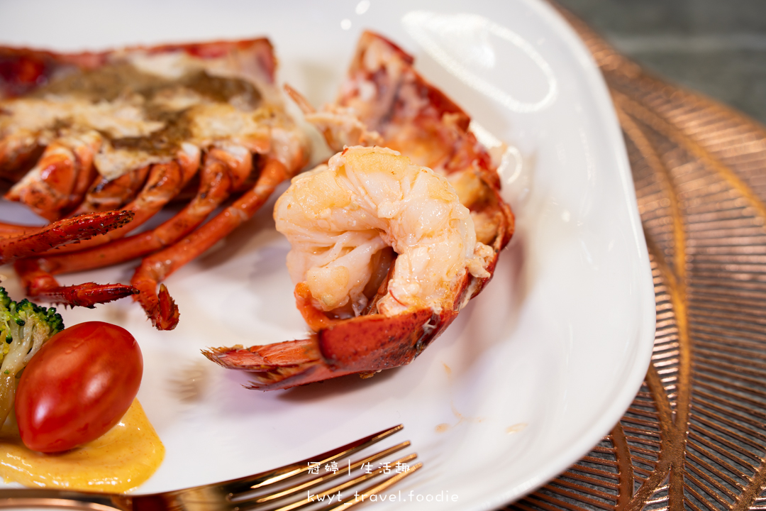 不同於龍蝦身體的Q彈,蟹螯肉的口感是紮實且一絲一絲的,咬起來非常飽嘴,有大口吃肉的滿足感。