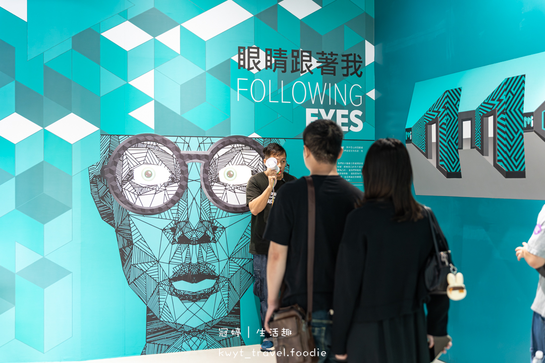 可以參考地上貼的拍攝點,跟作品保持至少六步的距離,從左邊移到右邊會發現眼睛會一直看著自己!