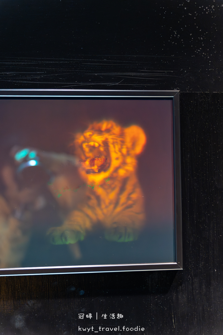 可以仔細觀察圖片中的動物,眼睛注視著圖片上下左右移動時,會隨著角度不同改變姿態。