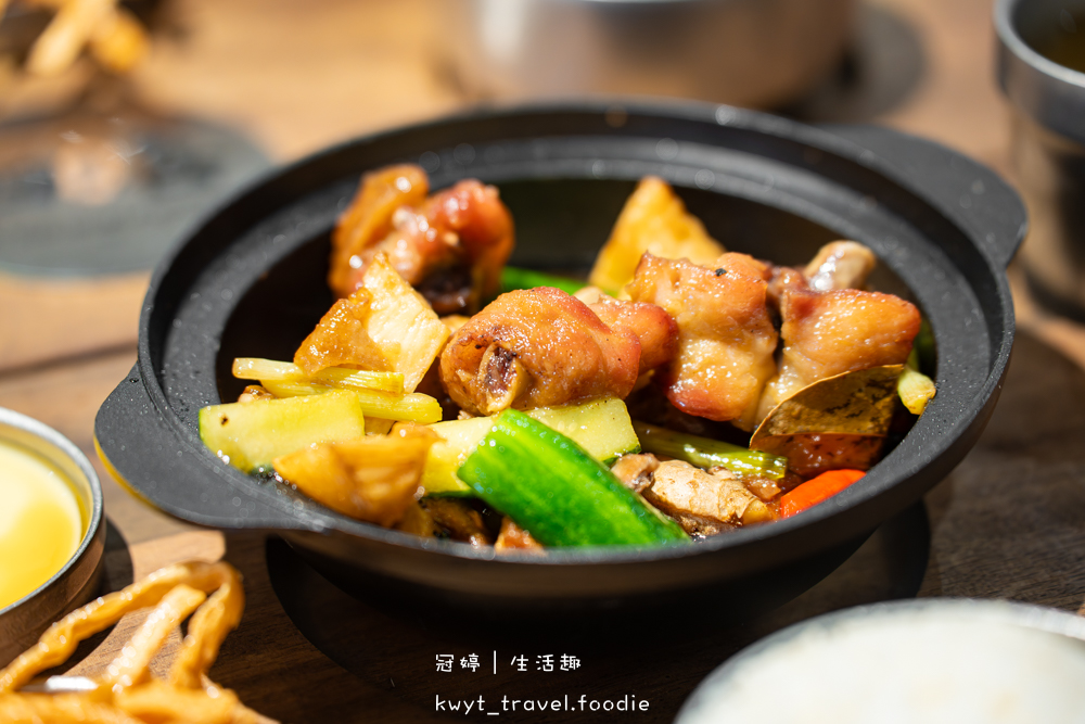 口感滑嫩的雞肉、蔬菜都料理過程中巴附上特製醬汁的香氣、鹹中帶辣,根本白飯小偷!