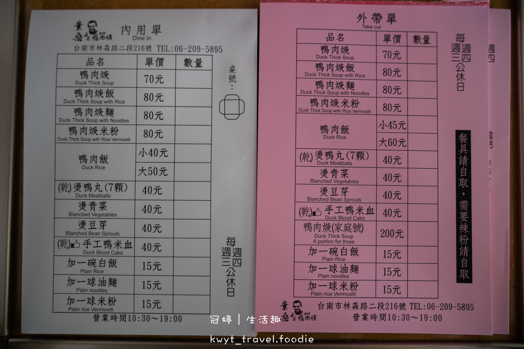 2025台南米其林指南必比登推薦_2025葉桑生炒鴨肉羹菜單,攝於2025/10/10