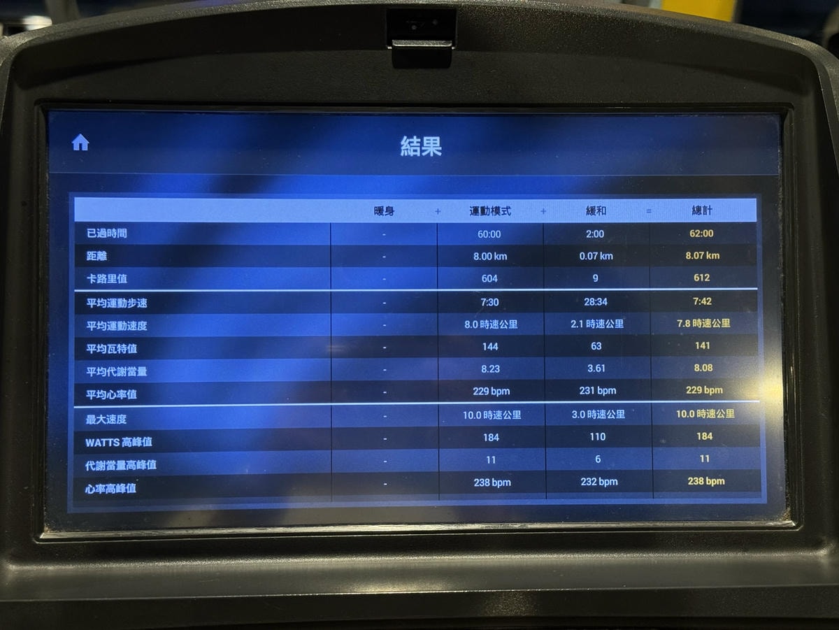 連續八週的時間,運動量最多的那週是運動5天,一天120分鐘、四天60分鐘,一週消耗掉3500大卡左右;最少是一週消耗掉1600大卡。