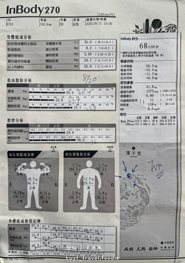 台中中醫減重推薦_澤予堂元熙中醫診所─台中中醫埋線推薦,美食部落客的減重神隊友,全職美食部落客6年難以避免的職業傷害,所以我持續進行客製化中藥調理、中藥減重搭配中醫埋線,最近八週還加入慢跑運動養成運動習慣,四周量一次Inbody追蹤減重狀況,持續一年的中醫減重心得分享_2025澤予堂元熙中醫診所中醫減重費用、埋線會痛嗎、中醫埋線費用、減重門診費用